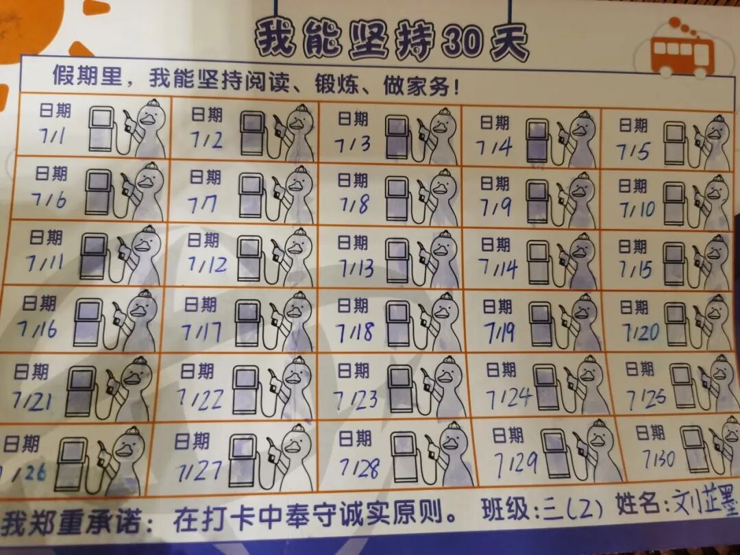 最后,让我们一起来看看四升五陶远上同学的暑期计划表。不难看出陶同学是一位擅长规划时间的学霸,一起为他点个赞!